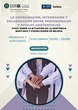 La segunda de las mesas se celebró el 29 de febrero, en el Salón de Actos del Colegio y a distancia, y girpó en torno a la coordinación/integración/colaboración entre profesionales y niveles asistenciales, poniendo el foco, entre otras cosas, en la colaboración entre la atención primaria y la hospitalaria (ver vídeo).