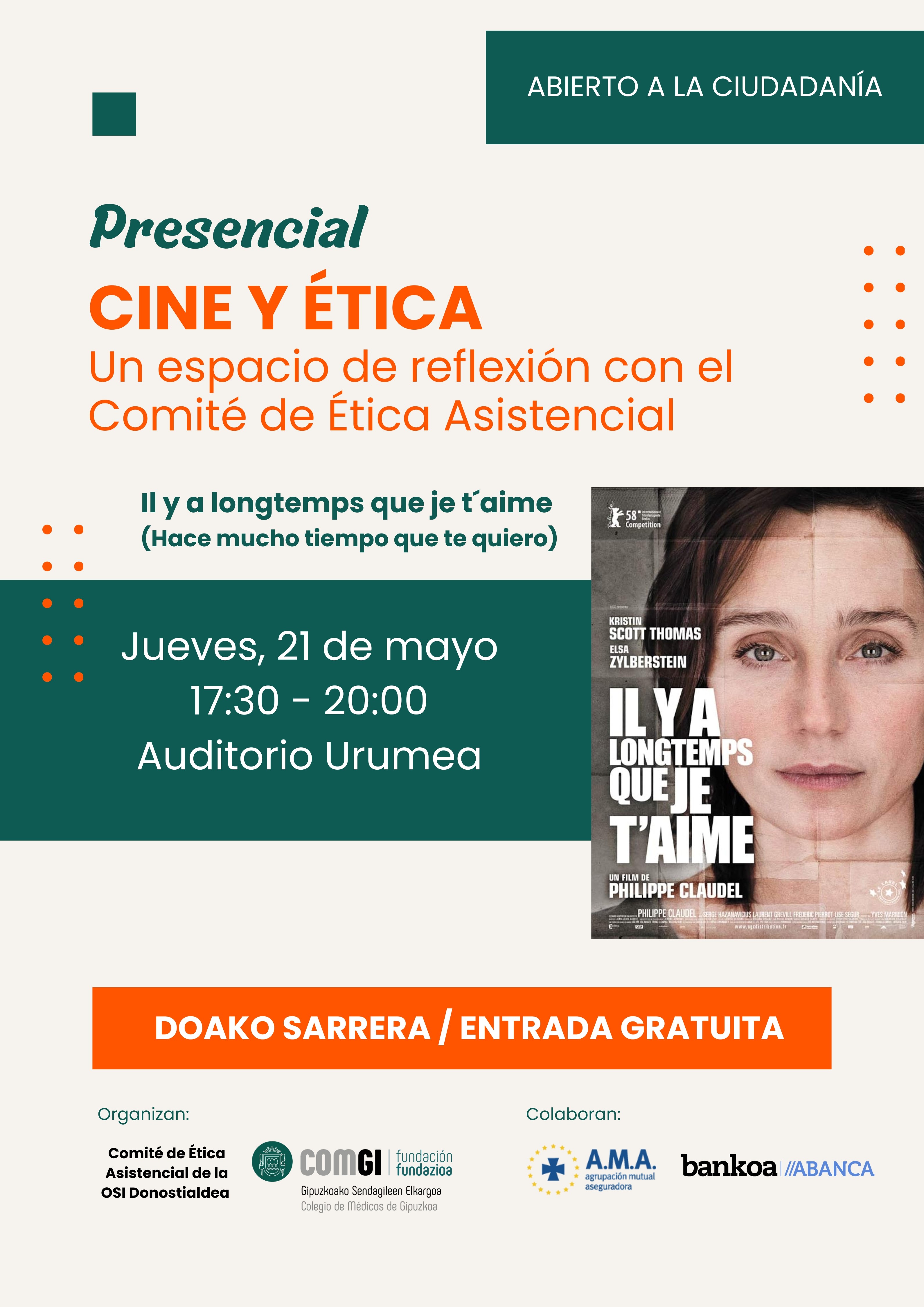 ReportajesEl ciclo de conferencias Cine y ética: Un espacio de reflexión con el Comité de Ética Asistencial es una iniciativa impulsada por miembros del Comité de Ética Asistencial de la OSI Donostialdea en colaboración con la Fundación COMGI. Esta propuesta combina la proyección de películas con un posterior espacio de diálogo, creando un entorno participativo donde el cine se convierte en herramienta para abordar dilemas éticos y morales presentes en la práctica asistencial y en la vida cotidiana. A través de historias y personajes, se invita a los asistentes a reflexionar de manera colectiva sobre cuestiones complejas que trascienden el mero entretenimiento.