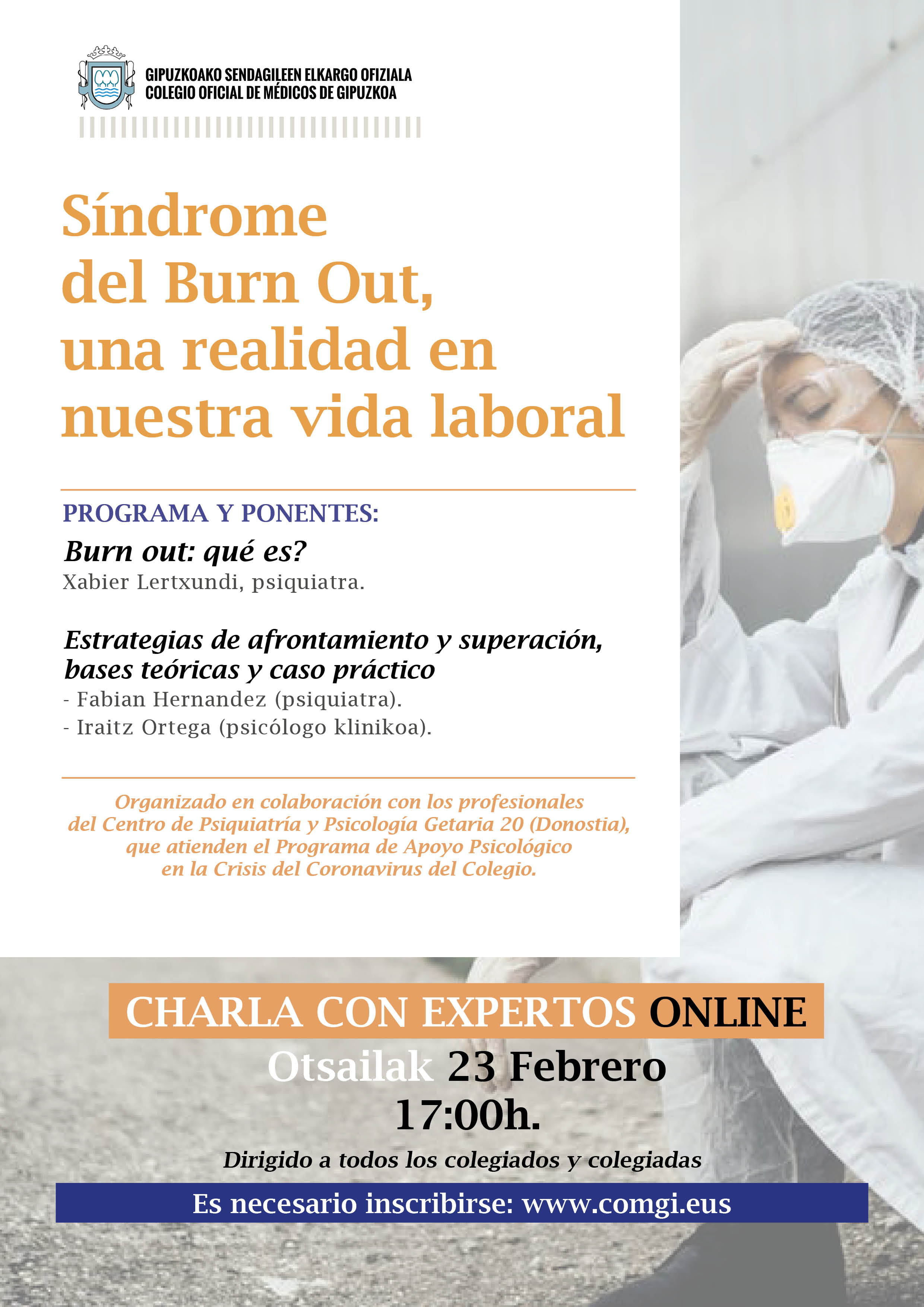 En colaboración con los profesionales del Centro de Psiquiatría y Psicología Getaria 20 (Donostia), que atienden el Programa de Apoyo Psicológico en la Crisis del Coronavirus del Colegio.